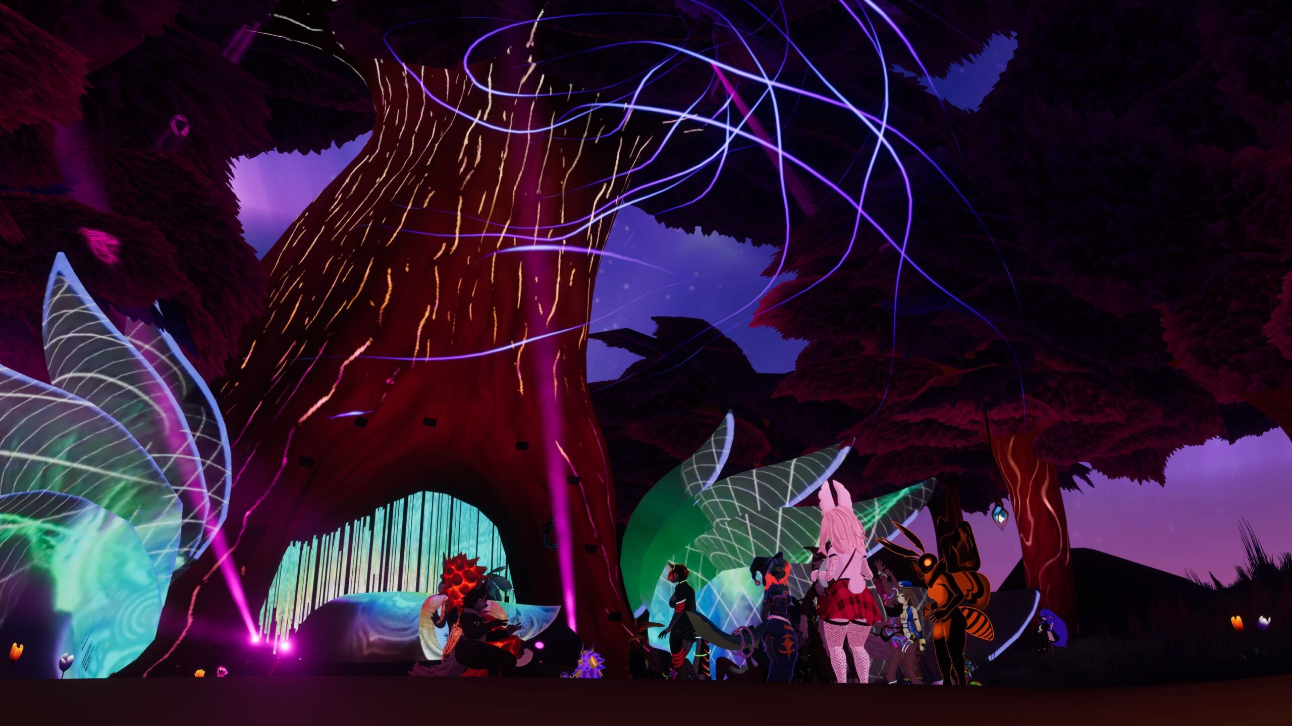 Aura Grove is the squishyfamily’s party world, a bioluminecent forest with a large tree that turns into a stage.